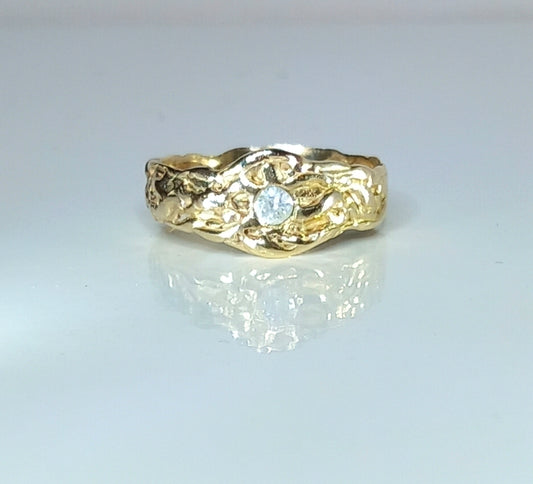9ct Yellow Gold Wave Ring with Lab Diamond