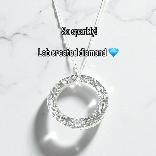 Handmade Solid Silver Lab Diamond 'Wave' Circle Pendant